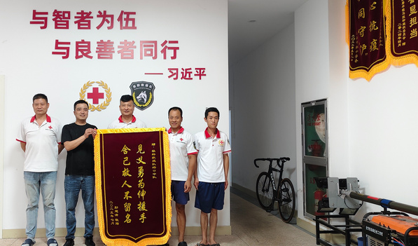 7月27日,高中生彭建清和年轻小伙李发明,专程来到杭州红十字狼群应急救援队场口中队,分别为队员们送上锦旗和慰问品,对他们危急时刻伸援手表示由衷的感谢! 事情还要从几天前说起,7月20日,救援队员在富阳区场口镇乌龟潭水域开展水域安全巡查。当天1...